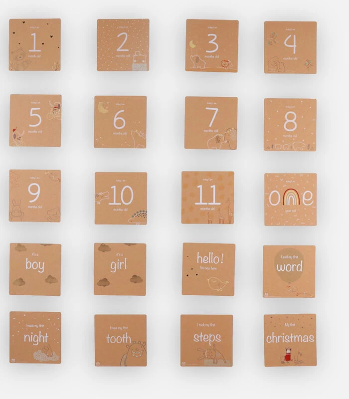 Vereeuwig alle mijlpalen van je baby met deze mijlpaalkaarten met schattige teksten in het Engels.