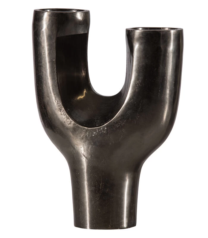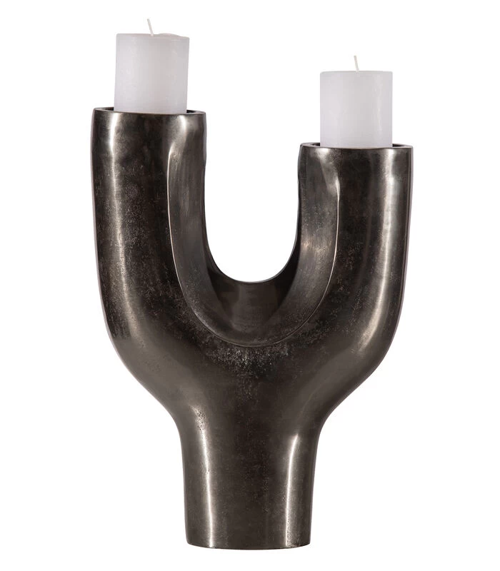 Deze grove kaarsenstandaard, van het Nederlandse merk WOOOD, met zijn robuuste design is een ware blikvanger in huis. De organische Y–vorm is fraai afgewerkt en heeft een stabiele stand. De poot heeft een hoogte van 12 cm en een doorsnede van 12 cm. Plaats ter bescherming van het oppervlakte een viltglijder onder de poot. De Don kaarsenstandaard is vervaardigd uit ruw aluminium wat van origine al zwart is. Voor het beschermen en het verlengen van de levensduur is de kaarsenstandaard gecoat met een dun laagje zwarte nikkel, hierdoor is Don kras– en slijtvast en hittebestendig.