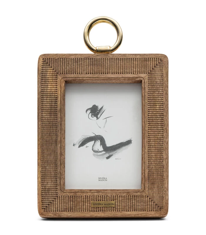 De RM Makena fotolijst is een wat grotere fotolijst uitgevoerd in mangohout. In het hout is een zeer verfijnd streeppatroon gebrand. Samen met de afgeronde hoeken zorgt dit voor een speels geheel. De lijst kan worden opgehangen aan de gouden ring aan de bovenkant, maar hem staand neerzetten kan natuurlijk ook. De lijst is geschikt voor een staande foto van 13x18cm.