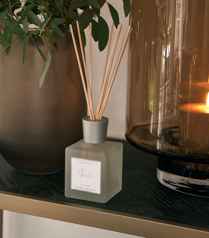 Geur bepaalt in belangrijke mate hoe we ons voelen. Daarom is de Rivièra Maison collectie uitgebreid met vijf nieuwe wereldse parfums voor een nog intensere sfeerbeleving. Unieke ‘Home Fragrances’ met de wereldse namen Naples, Milano, Kashmir, Sevilla en Ibiza, met elke een stevig eigen geurkarakter: fris of warm, zoet of kruidig. De Ibiza geurstokjes hebben een luxe geur van jasmijn, citrus, vijg en ceder.
