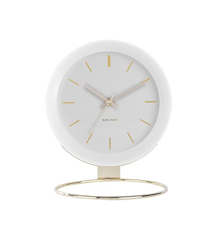 Dát is de beste manier om de serie Globe van Karlsson – ontworpen door Armando Breeveld – te beschrijven. Dit unieke ontwerp bestaat uit een wijzerplaat in een van de 4 beschikbare kleuren met daarop gouden details en daaroverheen een glazen bol. Die mix maakt Globe tot een absoluut hoogtepunt in jouw interieur. Klok Globe is beschikbaar als tafelklok, wekker en wandklok. Zo kun je de luxe look doorvoeren in elke ruimte van je huis. Het tafelmodel Globe heeft een prachtige gouden cirkelvormige voet. Een ding is zeker; Globe is een echte eyecatcher.Productinformatie