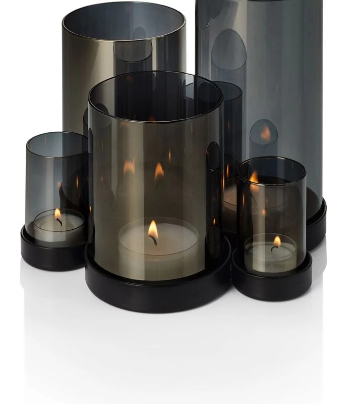 De PHILIPPI LICHTERMEER, dit bijzondere windlicht heeft niet voor niets de naam Lichtermeer gekregen, wat “zee van lichtjes” betekent. In de metalen basis zitten 6 uitsparingen waar je de glazencilinders in kan plaatsen, door de verschillende hoogtes krijg je een speels effect en de grijze coating op het glas weerspiegelt de vlammen van de kaarsen extra mooi. Deze eyecatcher betekent ongetwijfeld een meerwaarde voor jouw interieur.