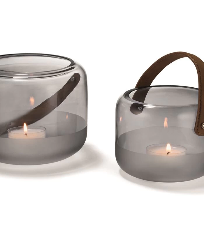 Mondgeblazen, welgevormd glazen windlicht in combinatie met een stoer gestikte handgreep van echt leer draagt een naam: MARLON. Dit windlicht is een feest in iedere tuin of op elk terras, maar binnen in huis kan natuurlijk ook. Gewoon het hele jaar genieten van het schijnsel van kaarslicht. De matte rand in het onderste gedeelte van het glas weerkaatst zachtjes het kaarslicht en verspreidt kalmte en sereniteit met een hoge chill–factor.