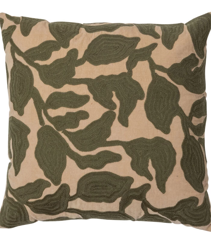 Breng sfeer in jouw zithoek met dit sprekende kussentje. Sierkussen Plant heeft een formaat van 45×45 cm. De kussenhoes is gemaakt van 100% katoen en heeft een zachte poederkleur met een donkergroen gekleurde bladeren print. De vulling bestaat uit 100% polyester.