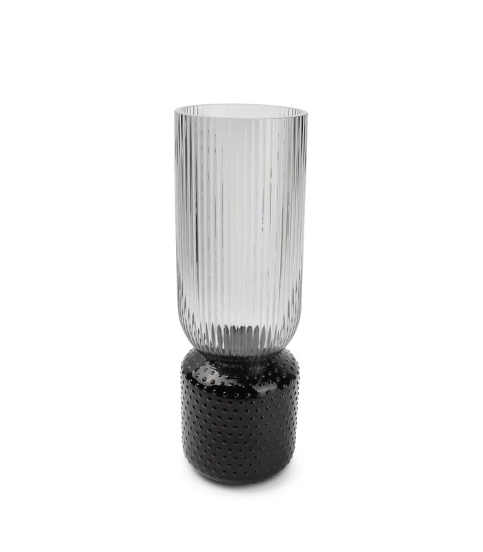 Dit is Coco, niet zomaar de zoveelste glazen vaas. Door het geometische design krijgt de vaas een speels karakter. De smoked Zwarte look vormt de vaas om tot een geraffineerd item. Het is werkelijk een must–have voor jouw interieur. Niet één, niet twee, maar drie verschillende formaten om mee te spelen. Geef je ogen de kost met dit prachtige decoratiestuk.