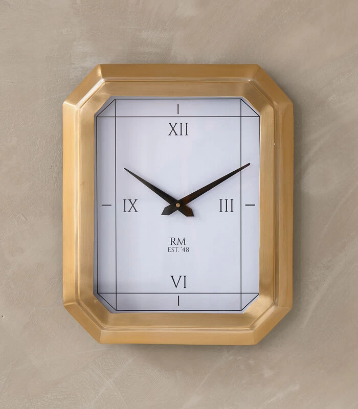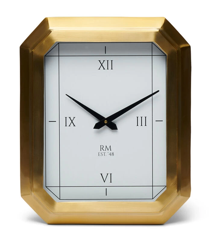 De RM Lizzy Clock is een achthoekige klok met een goudkleurige rand van roestvrij staal en een beschermplaat van glas. De wijzerplaat van de klok is wit, de wijzers zwart en de uren zijn aangegeven met de Romeinse cijfers voor drie, zes, negen en twaalf uur. In het midden staat de tekst ‘RM, EST. ‘48’.