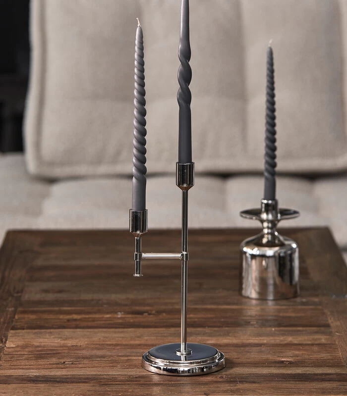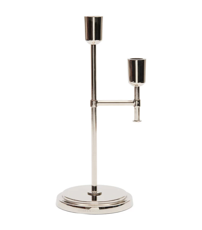 Klassiek en elegant, dat zijn de eerste woorden waaraan je denkt bij het zien van de RM Falguiere kaarsenhouder. De kandelaar heeft een verrassende asymmetrische uitstraling met een arm die uitsteekt vanaf het midden, zo biedt hij ruimte voor twee dinerkaarsen. De kaarsenhouder is gemaakt van glanzend metaal.