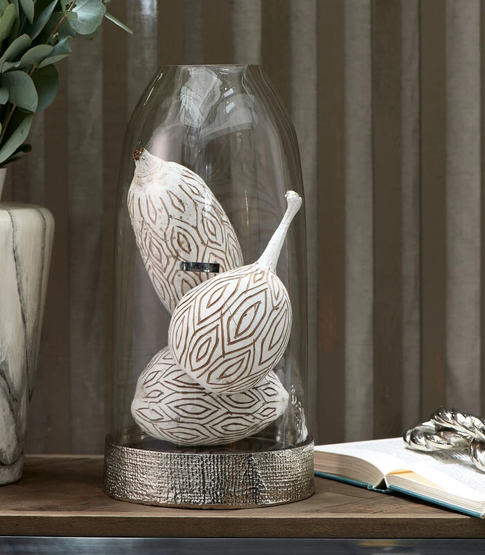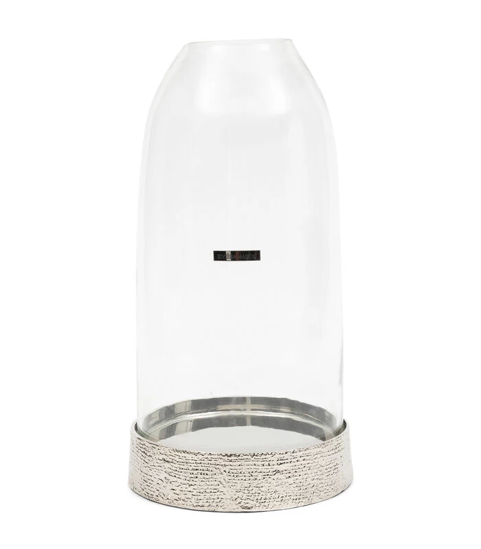 Pak eens uit met een groot windlicht, zoals windlicht Evansville uit de collectie van Rivièra Maison. De houder bestaat uit een voet en een glazen stolp met opening voor de rook van de kaars. De voet, die dus gemaakt is van aluminium, heeft een soort geweven linnenlook, wat echt zorgt voor een unieke uitstraling.